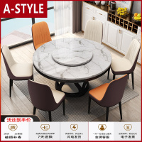 苏宁放心购大理石圆桌带转盘家用小户型吃饭桌酒店电磁炉简约圆形餐桌椅组合A-STYLE