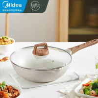 美的喆物 炒锅不粘锅炒菜锅麦饭石不粘锅电磁炉炒锅平底煎锅不粘烹饪锅具煎炒两用压铸一体加厚不染色 28cm加深煎炒锅(适合