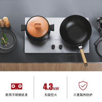 [无极控火]换新不锈钢灶750G 液化气 德意(DE&E)4.3KW大火力 钢化玻璃 一级能效 双灶嵌入式燃气灶