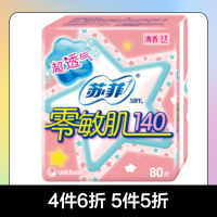 苏菲护垫零敏肌丝薄柔滑卫生巾140mm清香型姨妈巾80片