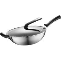 九阳不粘锅炒锅家用304不锈钢炒菜锅电磁炉煤气灶专用平底锅锅具 圆底聚油 全面屏 - 外径 34cm
