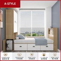 苏宁放心购现代简约小户型榻榻米床衣柜一体1.2米床 收纳单人床床头加衣柜A-STYLE家具