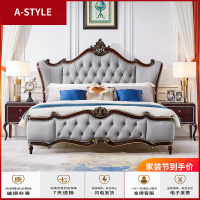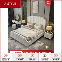 苏宁放心购北美欧式轻奢真皮床后现代简约双人床主卧实木婚床1.8米网红家具A-STYLE家具