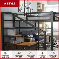 苏宁放心购北欧铁艺上床下桌高架床公寓双人床上下铺宿舍床小户型简约楼阁床A-STYLE家具