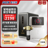 奥克斯净水器厨下家用直饮一体机600GRO反渗透净水机+10档调温3秒速热制冷管线机白色+7T前置过滤器全屋套装净水套餐