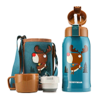 网红优选3D浮雕麋鹿款杯具熊BEDDYBEAR儿童保温杯带吸管儿童水杯316不锈钢宝宝儿童保温壶600m