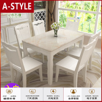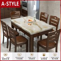 苏宁放心购实木大理石餐桌家用小户型简约现代饭桌1桌6椅组合长方形餐桌桌子A-STYLE