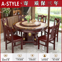 苏宁放心购大理石餐桌椅组合实木圆桌带转盘家用餐桌乡村大饭桌农家乐圆形桌A-STYLE