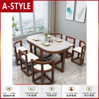 苏宁放心购小户型省空间餐桌实木大理石台面饭桌网红隐形一桌六椅椭圆形桌子A-STYLE