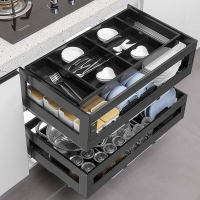 拜隆厨房橱柜304不锈钢阻尼轨道抽屉式双层拉篮厨柜内置物收纳碗碟篮