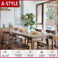 苏宁放心购北欧餐桌家用小户型风格家具黑胡桃木饭桌简约现代原木餐桌椅组合A-STYLE家具