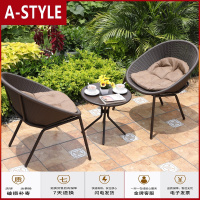 苏宁放心购阳台小茶几藤椅三件套靠背椅庭院北欧现代简约组合户外阳台桌椅A-STYLE家具