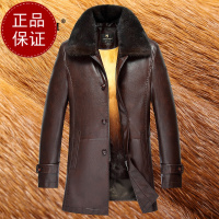 免费试穿 高端皮草冬装中年海宁真皮皮衣男式翻领皮毛一体中长款加厚加绒皮大衣男依诺柏尼品牌男士商务大码真皮外套爸爸装