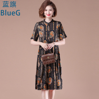蓝旗 夏季新款妈妈装短袖洋气连衣裙中长款印花裙子