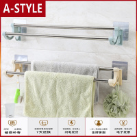 苏宁放心购粘贴式不锈钢双杆毛巾架抹布架子厕所卫生间免打孔浴室毛巾杆挂架A-STYLE