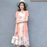 魅言魅语(MeiYanMeiYu)雪纺连衣裙2021夏季新款韩版大码女装中长款刺绣绣花假两件连衣裙妈妈装