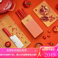 十八子作大马士革纹67层复合钢材菜刀彩木柄锋度四件套刀S2009 含砧板刀盒
