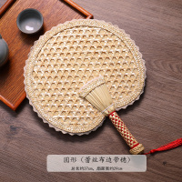 手工草编手摇扇子夏季小麦秸扇宝宝婴儿纳凉扇家用老式大蒲扇子 圆形扇(蕾丝布边带穗)