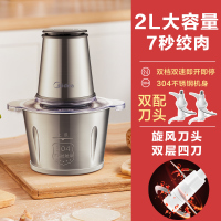 银灰色 美的(Midea)绞肉机 家用电动不锈钢机身多功能小型打肉馅碎菜搅拌蒜泥蓉辅食机2L大容量立体4叶