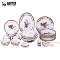 富昱景 餐具套装骨瓷 景德镇陶瓷欧式家用骨瓷金边碗碟盘套装送礼 42件