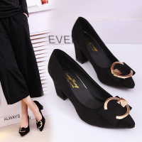 桂兰珊(Guilanshan) 2020春秋季新款韩版尖头鞋子浅口C扣绒面粗跟单鞋女士中跟高跟鞋