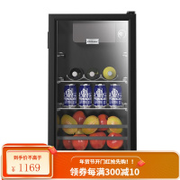 荣事达冰吧小型单门冰箱家用客厅办公室饮料透明冷藏柜茶叶保鲜柜 128L黑色 冷藏+冷冻 带LED灯