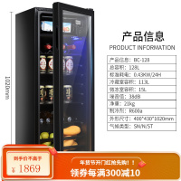 荣事达冰吧小型单客厅家用小冰箱办公室透明茶叶饮料冷藏红酒柜 -118黑色[全冷藏+微冻]带LED蓝光灯