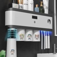 [苏宁好货]智能紫外线消毒牙刷架牙刷盒免打孔网红置物架光能无线充电牙具座 四口之家