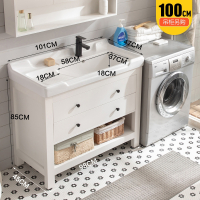 洗衣柜洗衣池阳台家用带搓板洗衣台洗手洗脸盆柜洗衣机伴侣柜 101cm陶瓷台面[白色]