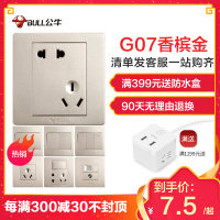 公牛开关插座墙壁家用暗装开关插座G07香槟金色墙上暗线86型带五孔带开关电源插座