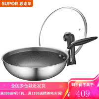 苏泊尔(SUPOR)304不锈钢炒锅蜂窝晶纹复合钢全屏炒菜锅防粘可立盖燃气电磁炉通用EC30JC04 30厘米 可立盖
