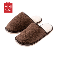 名创优品(miniso) 简约系列毛绒女士棉擦地拖鞋(棕色,43-44码)