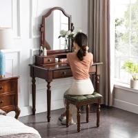 简约现代全实木梳妆台欧式卧室小户型复古化妆台美式乡村化妆桌
