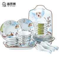 富昱景 碗碟套装 家用陶瓷餐具套装 景德镇 碗盘中式碗盘送礼花开时节37件 8人食