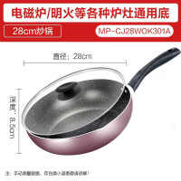 美的不粘锅麦饭石炒锅家用炒菜锅电磁炉燃气灶专用锅煤气灶平底锅 *28cm-燃磁通用紫色