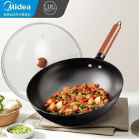 美的(Midea)喆物铁锅多功能精铁不锈炒菜锅加厚锅底健康无涂层炒锅燃磁通用 32CM口径 铁锅 带锅盖