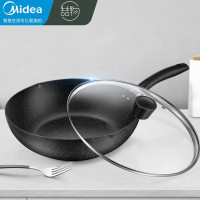 美的/Midea多功能精铁不锈炒锅无涂层家用炒菜锅电磁燃气通用铁锅 黑色