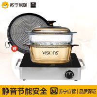 康宁(VISONS)锅具套装 电陶炉 VHS-220-AR+3.25L汤锅+玻璃蒸锅24CM套装 赠烤盘