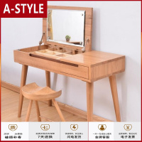 苏宁放心购日式纯实木梳妆台北欧翻盖化妆桌带镜子简约小户型白橡木卧室家具1.05米梳妆台+化妆凳A-STYLE家具