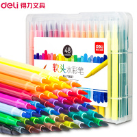 得力(deli)70687软头水彩笔48支/盒 儿童学生用可水洗美术画笔 色彩鲜艳涂鸦笔涂色勾线笔 水彩画画笔套装48色