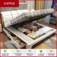 苏宁放心购真皮床1.8米双人轻奢现代简约婚床主卧小户型欧式榻榻米储物软床A-STYLE家具