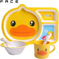 Face儿童餐具套装 BD-W2 黄色 3.5寸-5.5寸宝宝多功能分格卡通餐盘 食品级密胺材质 婴儿防摔辅食碗叉勺套装