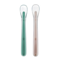 babycare新生婴儿勺子2只套装 初生儿宝宝硅胶软勺 儿童学吃饭喂水辅食勺 浅嗬绿+珀尔里粉 2105