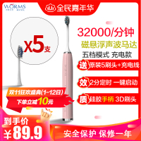 worms电动牙刷成人全自动声波防水软毛男女士学生党情侣牙刷 罗马粉 五档位旗舰充电款配(原装5刷头+USB充电线)