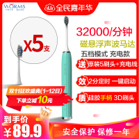 worms电动牙刷成人全自动声波防水软毛男女士学生党情侣牙刷 罗马蓝 五档位旗舰充电款配(原装5刷头+USB充电线)