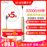 worms电动牙刷成人全自动声波防水软毛男女士学生党情侣牙刷 罗马黄 五档位旗舰充电款配(原装5刷头+USB充电线)