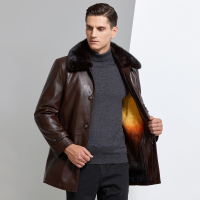 【高端皮草 内胆可拆卸】正品海宁真皮皮衣男尼克服水貂毛领翻领黄金水貂内胆尼克服皮夹克中老年爸爸装绵羊皮外套狐狸毛领
