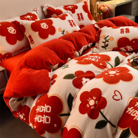 浪莎婚庆牛奶绒四件套结婚大红色珊瑚绒床上用品法兰绒喜被套床单1779