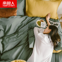 南极人(NanJiren)家纺 全棉件套水洗棉床上用品床单被套纯色北欧风纯棉4件套1.8m