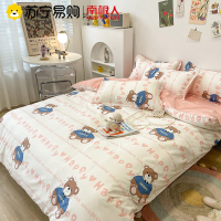 南极人(NanJiren)韩式小清新水洗棉四件套少女心公主风床单被套磨毛三件套床上用品印花